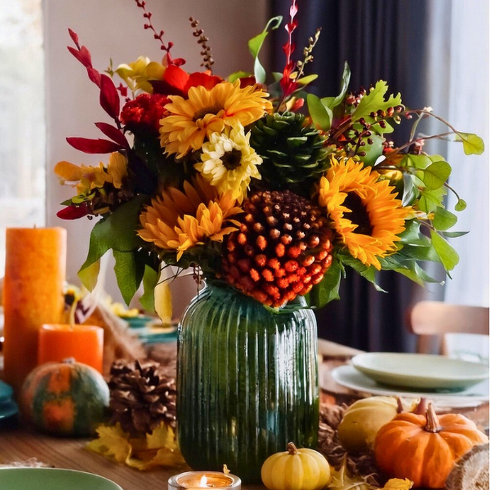 Add a seasonal vase or centerpiece filled with fall-themed items like dried leaves, branches, or berries to your table. This touch not only adds visual interest but also sets a thematic tone for your home, reflecting the autumn season’s charm and character.